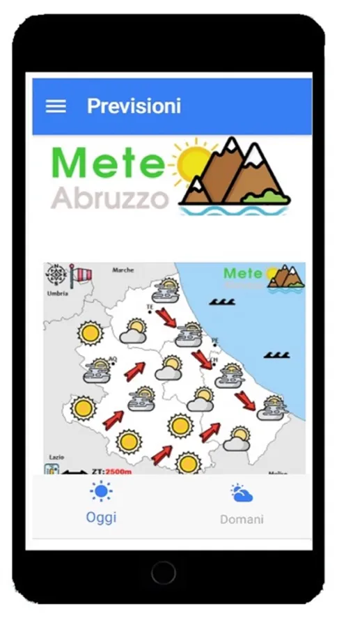 Una nuova app che trasmette le previsioni meteo dell'Abruzzo con le previsioni di oggi e di domani, le stazioni meteo dalla provincia dell'Aquila, Teramo, Pescara e Chieti e le webcam che trasmettono in tempo reale le immagini delle bellissime cittadine abruzzesi.