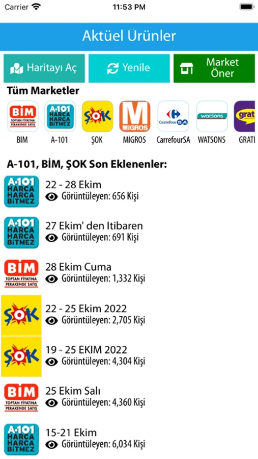Marketlerin haftalık olarak yayınlanan kampanya broşürlerinin yer aldığı ücretsiz uygulamadır.