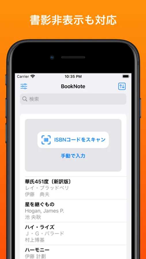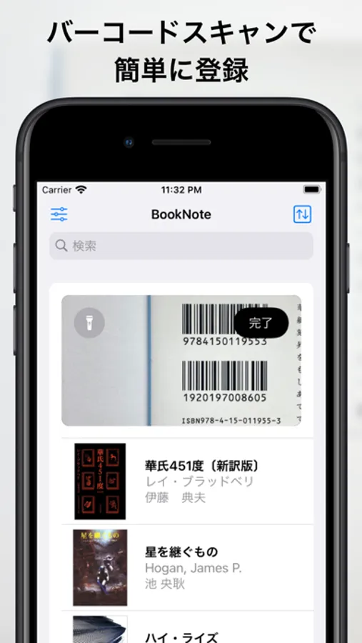 本のバーコードをスキャンして本の情報を登録。連続で読み取れるので、サクサク登録できます。手動でも入力できます。
