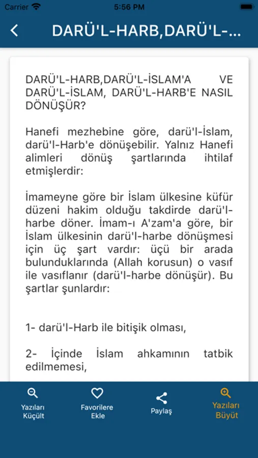 İslam fıkhı hakkında aradığınız yüzlerce kelime, kavram ve sorunun cevabı ve anlamı uygulamamızda sizleri bekliyor. İster arama motoruna istediğiniz kelime ya da soruyu yazın ister alfabetik listeden sırayla okuyun. Detaylı bilgiler, başlık ya da soruları favorilerime ekleme ve farklı platformlarda paylaşma seçenekleri ile bu uygulama çok işinize yarayacak.