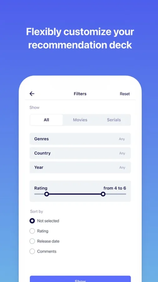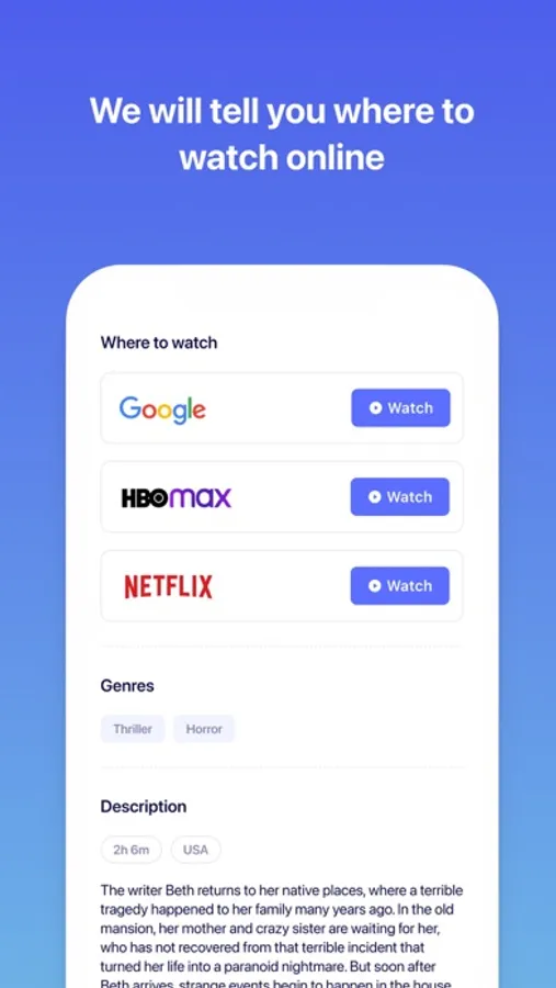 The user-friendly and familiar card deck interface allows you to swipe right on movies and TV shows you like to watch them now or save them for later, and swipe left if a suggested film doesn't interest you.
