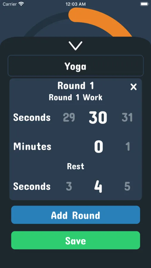 (For Workout Creation, tap on create workout, type name and change round seconds by scrolling horizontally)