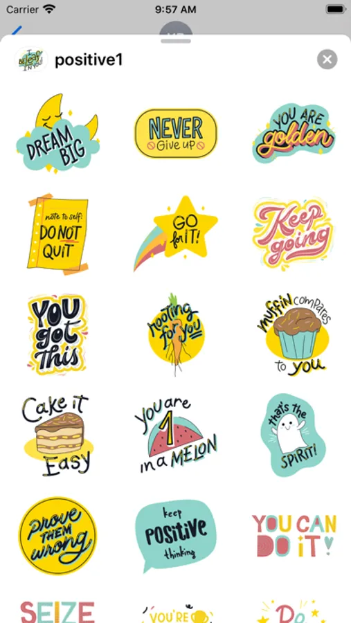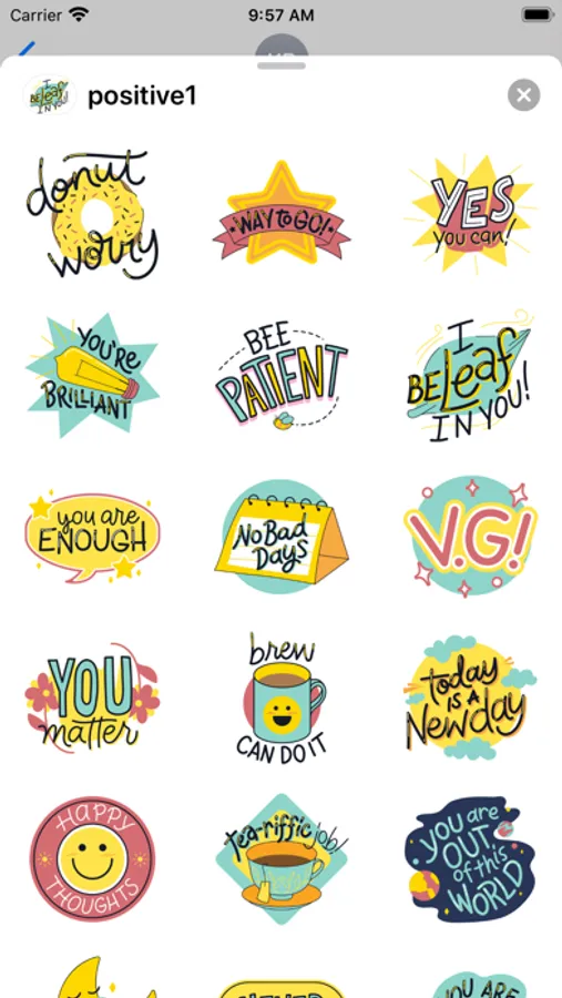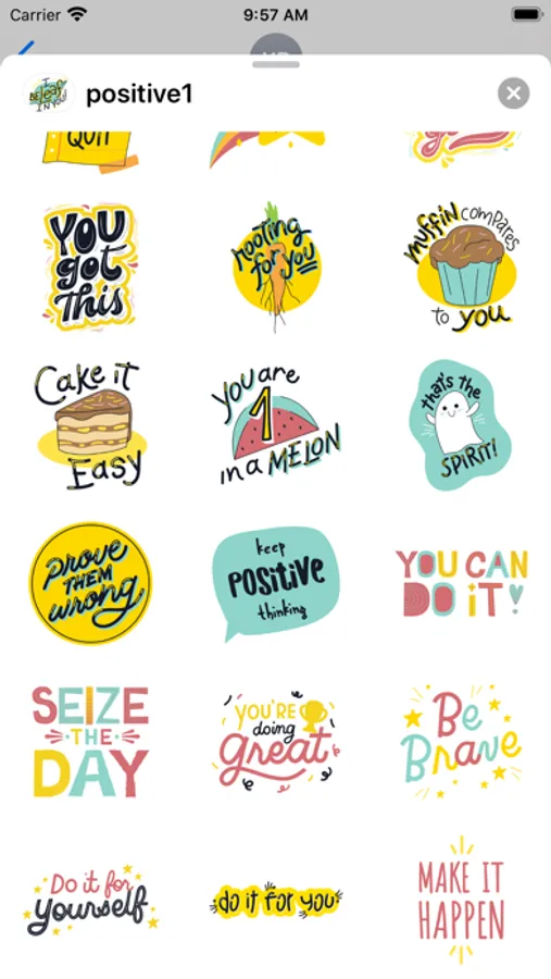 • Tap the more icon(...) to access the App Store for iMessage. Tap Edit tab and find 'positive1' stickers to add them.