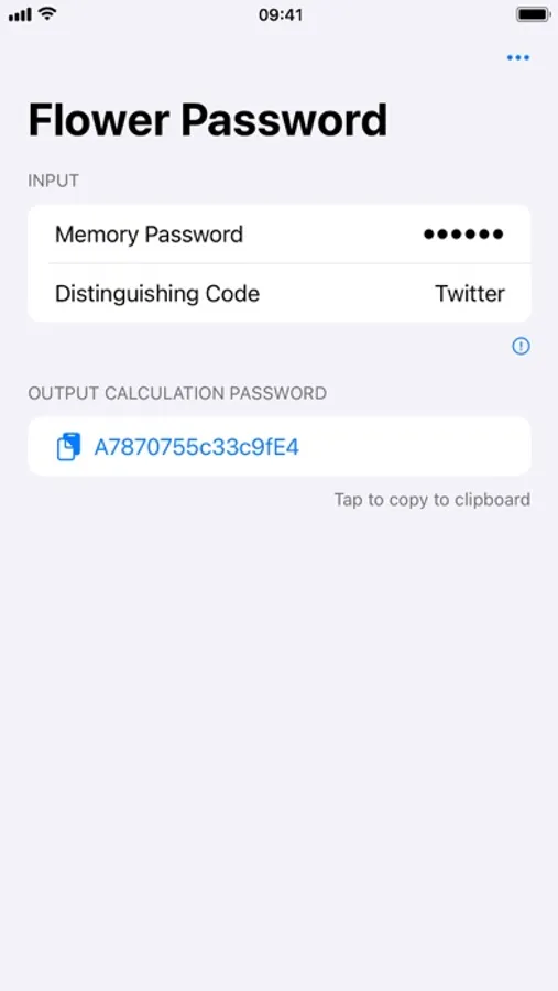 Flower Password provides a simple password management method, you only need to remember a "Password", and set different "Code" for different accounts, then you will get the complicated password.