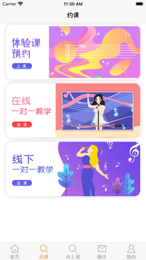 「一对一试听课」可以先预约一对一真人老师体验课,对您的嗓音调节进行评测,让你感受一下上课流程和方法