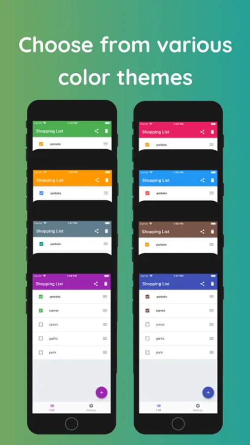 There are only two screens: the shopping list and the settings screen.