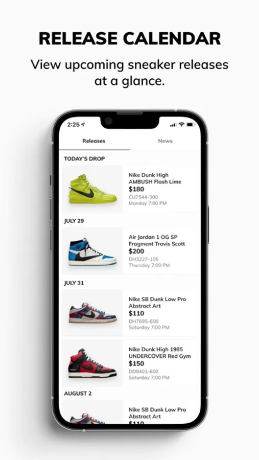 Missed out on a grail from the past? See an upcoming sneaker release that you do not want to let fly by? Browse through thousands of sneaker releases from the past and present effortlessly by searching through our limitless database.