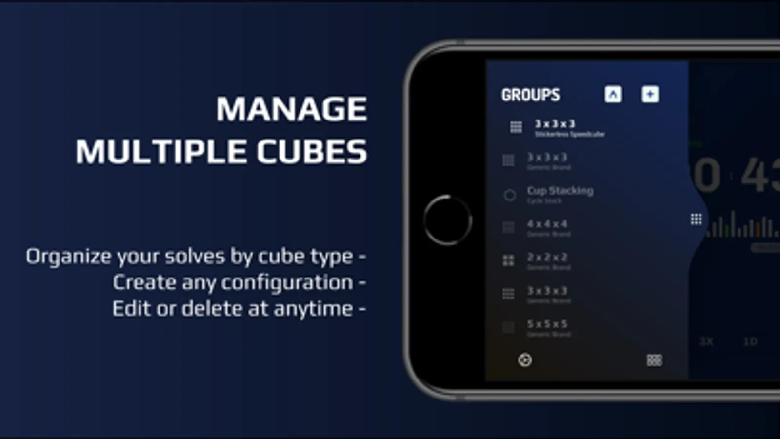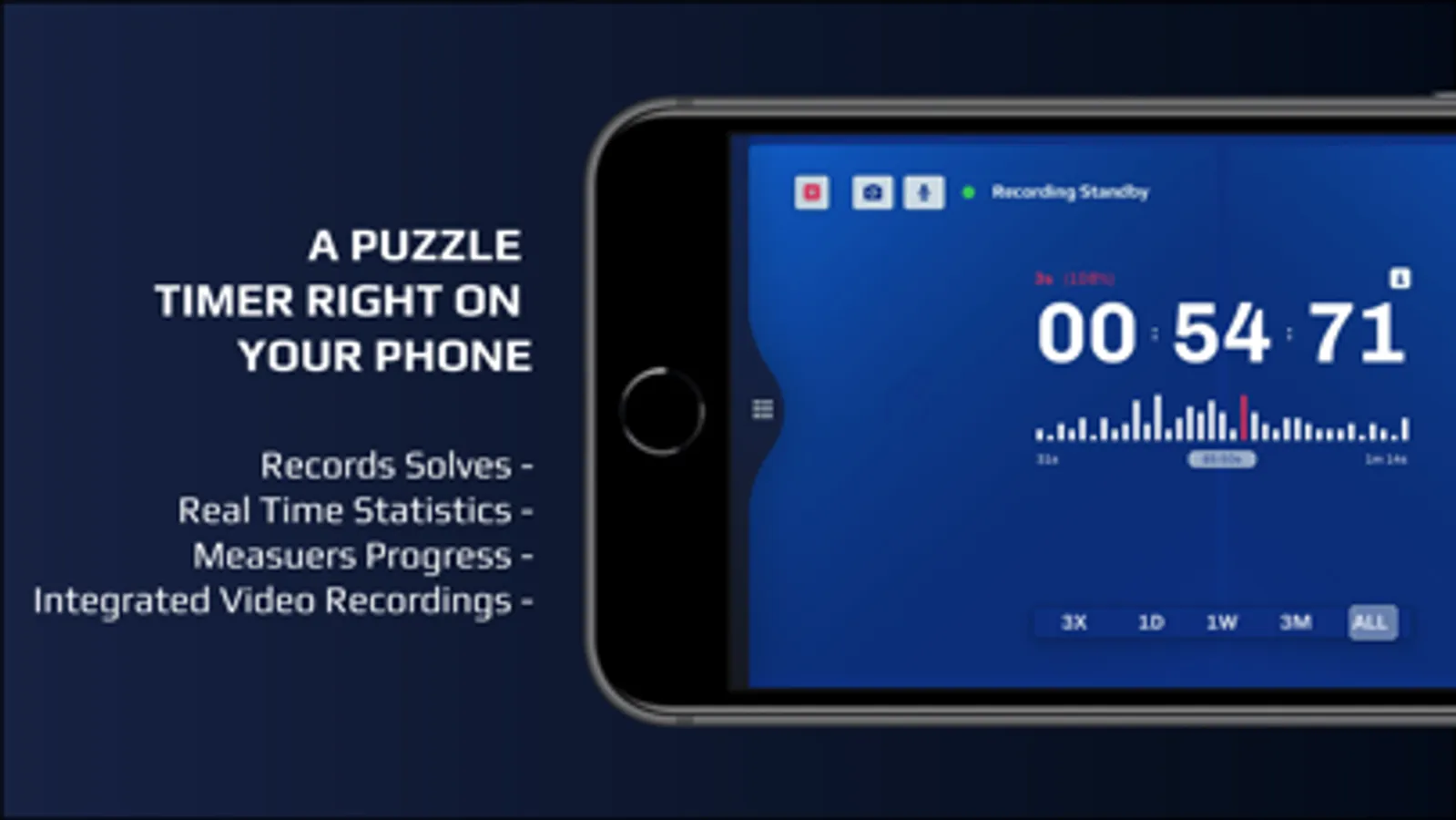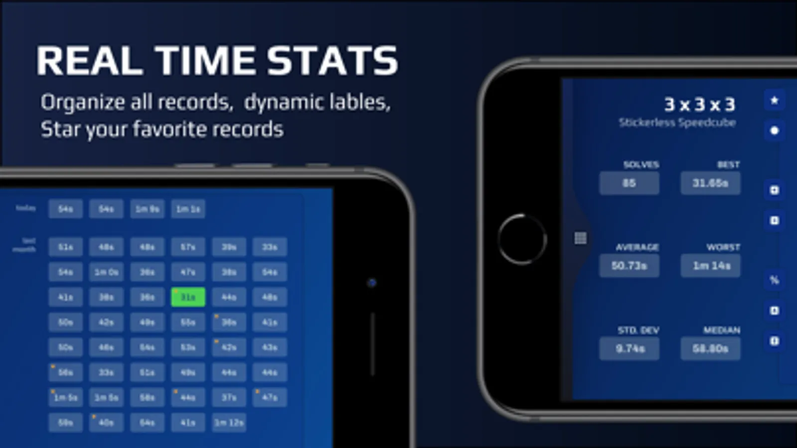 • Provides a real time frequency histogram bar graph of your saved solve times.