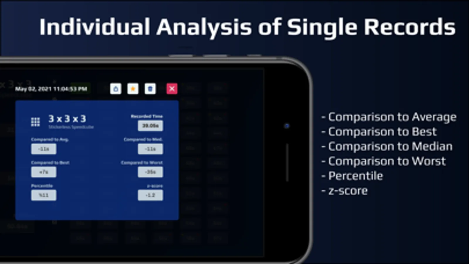 • Ability to compare your current solve time to data points generated from different timeframes (ie. today, this week, this month, ...)