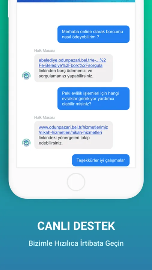 * Canlı destek modülü ile Halk Masası personellerimizle online olarak görüşüp; taleplerimizi iletebilirsiniz.