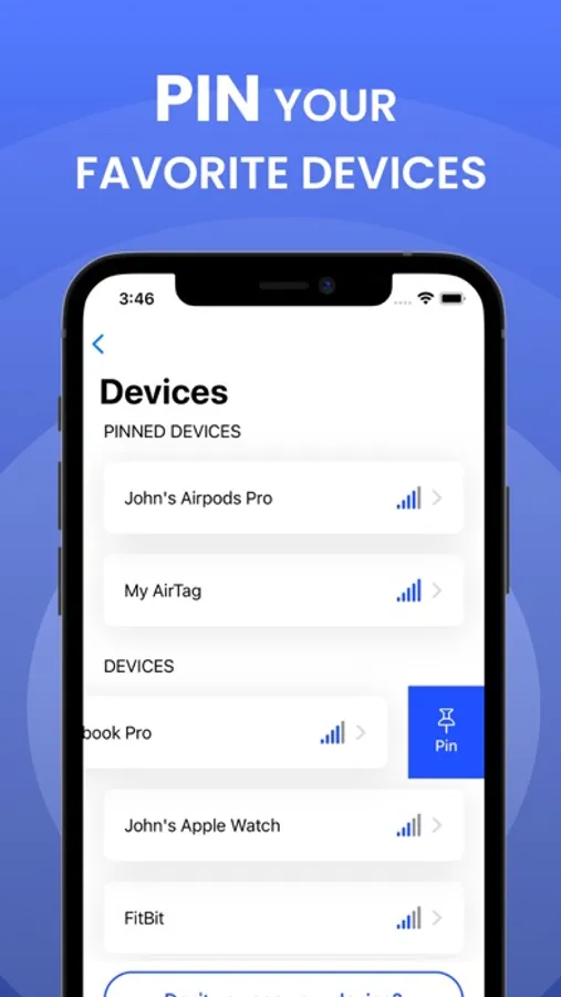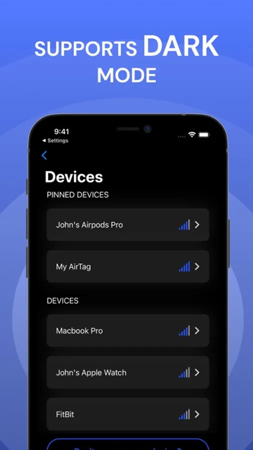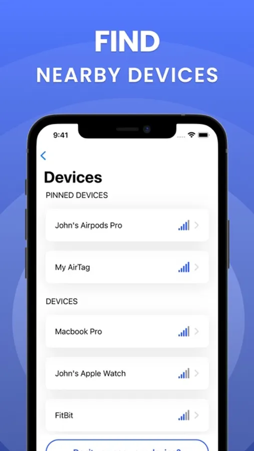 It helps you to locate and track your Airpods, Apple Watch, MacBooks, Apple TV, Earbuds, iPads etc. Just move around and discover the nearby devices. You can also pin your lost devices.