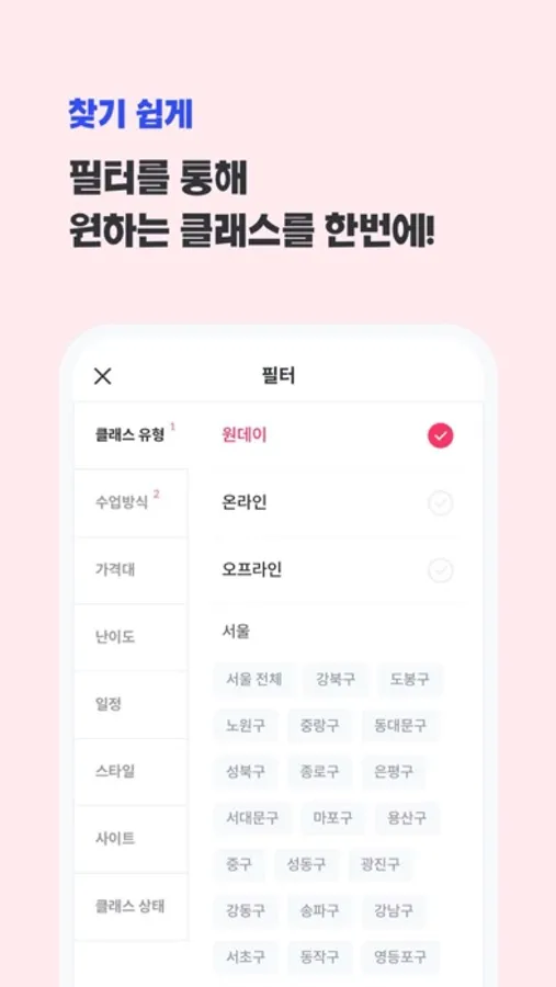 "괜찮아요. 수많은 클래스들 중 당신의 취향저격 클래스를 골라 드려요."