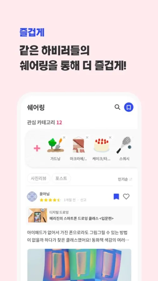 온,오프라인 모든 취미를 모아 쉽게 즐길 수 있도록 도와드려요.