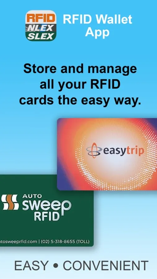 Frequently bringing-out your physical rfid cards can increase the chance of losing it. RFID Wallet App allows you to have a digital copy of all your rfid cards accessible anytime, anywhere. You can show a digital copy of your rfid cards on your device whenever you reload at any reloading stations. No more accidentally losing rfid cards. Your physical rfid cards are kept safely inside your car.