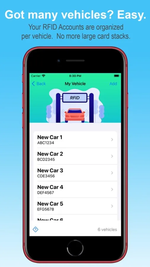 2. Organize multiple rfid accounts per vehicle for easy viewing.