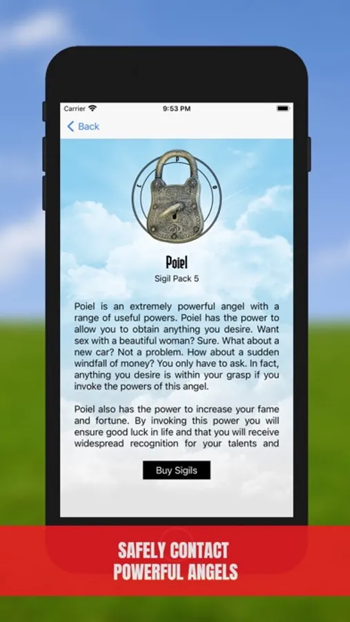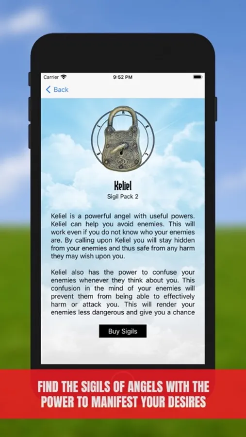 Angel Magick also includes a sigil finder. This allows users to more easily identify appropriate sigils to work with. Just select a desire you wish to obtain and the sigil finder will suggest appropriate angels to work with to manifest that desire.