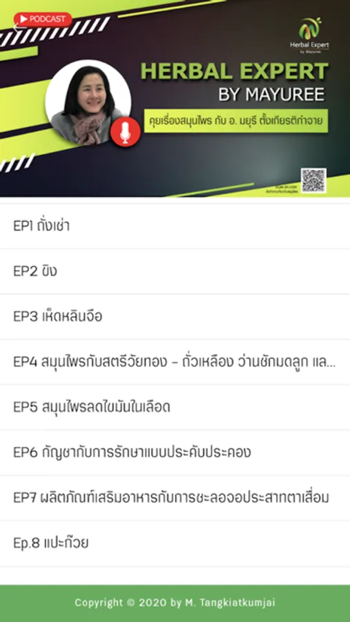ภญ.มยุรี ตั้งเกียรติกำจาย ผู้จัดทำแอพพลิเคชั่นและเว็บไซต์ในฐานะนักวิชาการอิสระ นำเสนอข้อมูลที่เป็นกลาง มีประสบการณ์และเชี่ยวชาญในการให้คำปรึกษาการใช้สมุนไพรและผลิตภัณฑ์เสริมอาหาร ไม่มีผลประโยชน์ทับซ้อนกับบริษัทผลิต หรือ จำหน่ายยา สมุนไพร ผลิตภัณฑ์เสริมอาหาร ผลิตภัณฑ์อาหาร และเครื่องสำอางใด ๆ