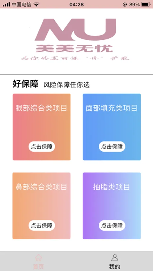 美美无忧是一款医美保险类APP,软件宗旨是为客户的美保价护航。
