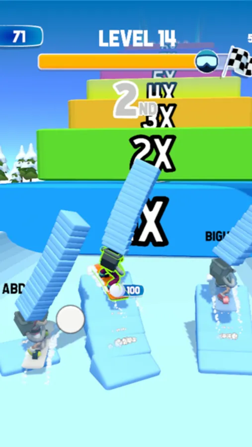 Time for a snowboard showdown! Race against opponents stack up all the snows you can pick up along the way. Use snows to build ramps get speed boosts to finish before everyone else. Make all the acrobatic and artistic movements to become the next rockstar of ski olympics!