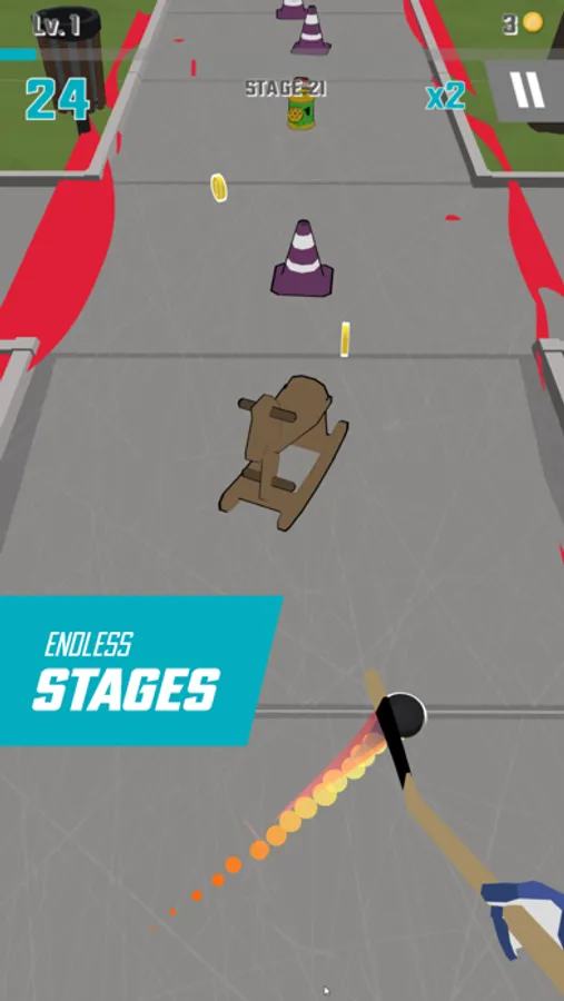 Deke, chip, and toe drag through a fun hockey experience like no other. By using one touch controls, this is a new fun way to play hockey on mobile. Swipe-up to chip the puck in the air, swipe-down to perform a toe drag, and tap the screen three times quickly to go on fire, which adds a temporary multiplier.