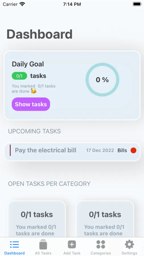 Track down your daily tasks easily by creating your own categories and your own priorities!