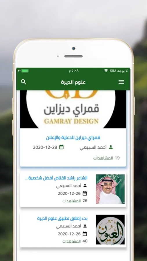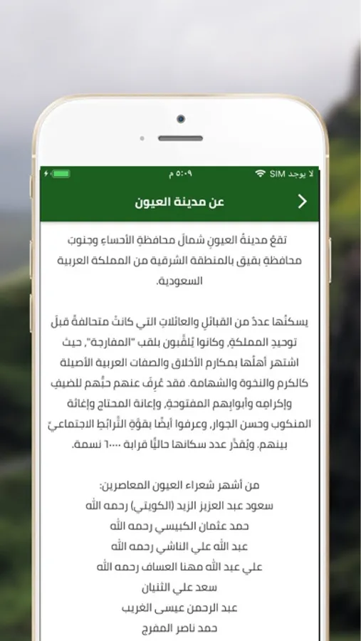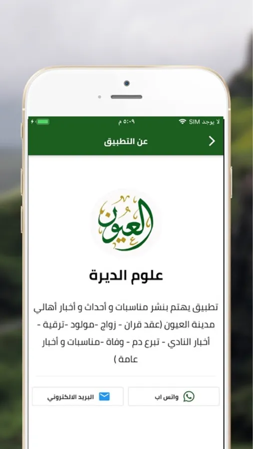تطبيق يهتم بجمع ونشر أخبار ومناسبات أهالي مدينة العيون، حيث يستطيع كل مستخدم التسجيل مجانا وإضافة الأخبار والمناسبات الخاصة به، تقوم إدارة التطبيق بمراجعة كل خبر والتدقيق، بعدها يتم نشر الخبر ليصل لجميع المستخدمين.