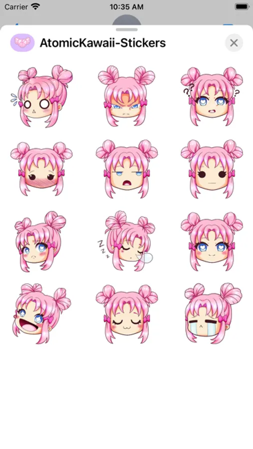 AtomicKawaii bringing the cuteness in strong! Adding 12 adorable stickers featuring Aiko and her heart buns! Download today to add a whole new level of kawaii to your messages!