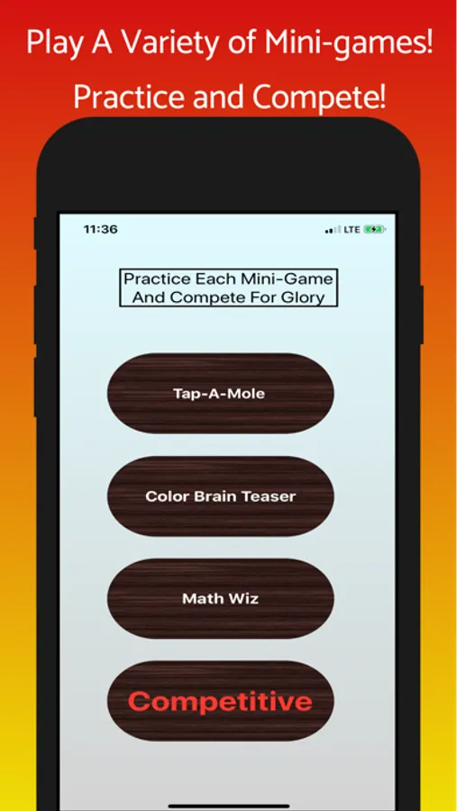 Play a variety of mini-games and compete head to head against other players and friends for glory and real prizes. Currently there are three mini-games that involve brain teasers, reaction speed, and math skills. New mini-games will be added periodically. Please leave a review if you have any specific requests for mini-games!