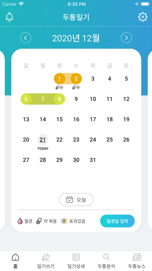 두통 일기 작성을 통해 두통 유무와 유발 요인을 기록하여 확인할 수 있으며, 기록을 바탕으로 명확한 분석을 통한 대응은 환자의 삶에 긍정적 영향을 미칩니다.