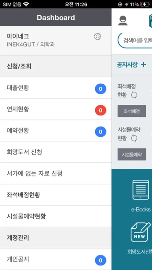 좌석배정, 스터디용 공간을 예약할 수 있습니다.
