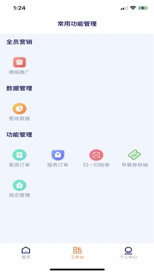 功能上提供了营业分析、房态图、验券、营销等功能,进一步提升酒店从业人员操作PMS系统的便捷性和拉近营销人员与客人的距离。