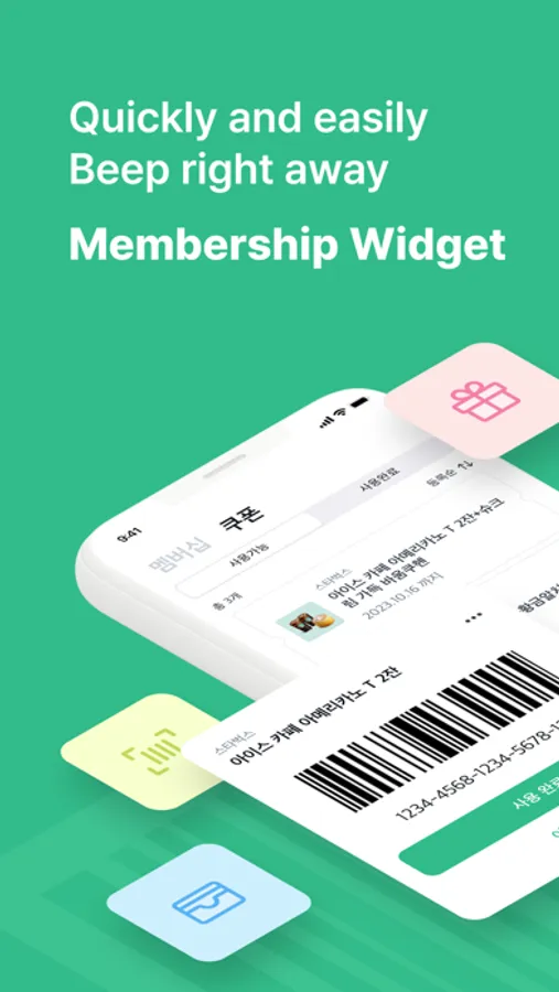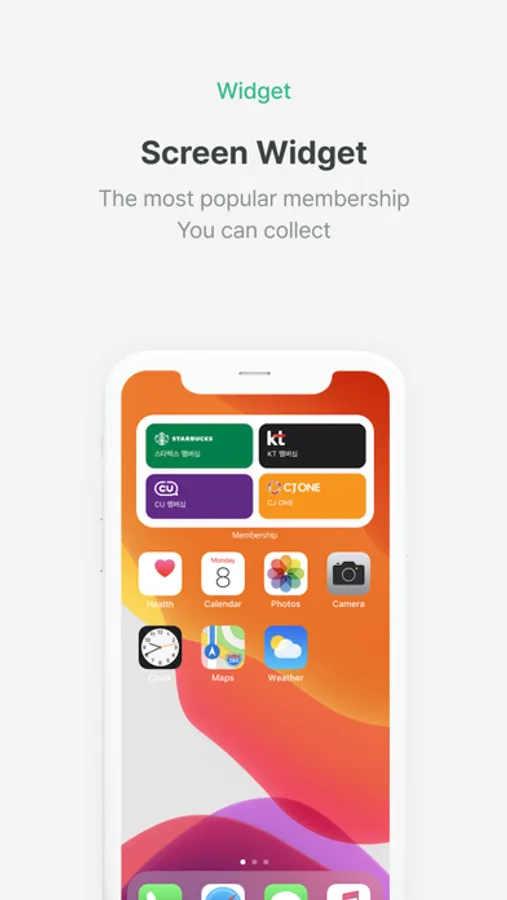 'Membership: Home Screen Widget' is an app that allows you to create and manage various memberships (SKT, KT, U+, Starbucks, LPoint, etc.) and easily use them through the widget feature provided since iOS14.
