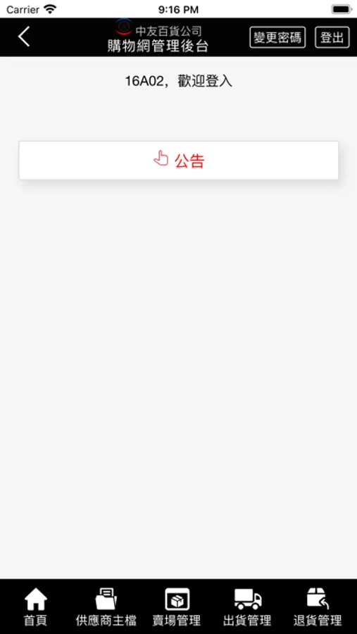 中友百貨/中友購物網的協力廠商與自有同仁透過輸入櫃號與密碼後,即可登入購物網後台系統,使用以下功能:
