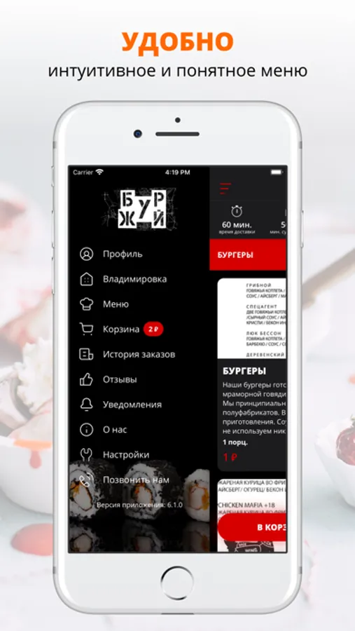 Доставка еды — это самый удобный способ попробовать блюда разных кухонь мира быстро и без хлопот, ведь БУРЖУЙ привозит заказы 7 дней в неделю. Термосумка сохраняет тепло горячих блюд, поддерживает оптимальную температуру для прохладительных напитков. Вы получаете именно то, что заказывали, всё свежее, горячее и аппетитное. Где заказать еду с бесплатной доставкой? Выбор очевиден! В меню БУРЖУЙ :