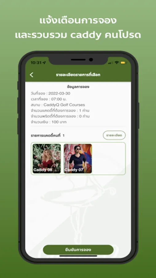 Application เพื่อให้เหล่าท่านนักกอล์ฟ สามารถจอง Caddy ที่มีความสามารถตรงตามความต้องการของท่านนักกอล์ฟ อีกทั้งยังเป็นช่องทางในการจอง Tee - time เพื่ออำนวยความสะดวกเเต่ท่านนักกอล์ฟโดยไม่ต้องโทรไปจองกับสนามกอล์ฟโดยตรง “Not call just click”
