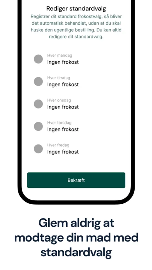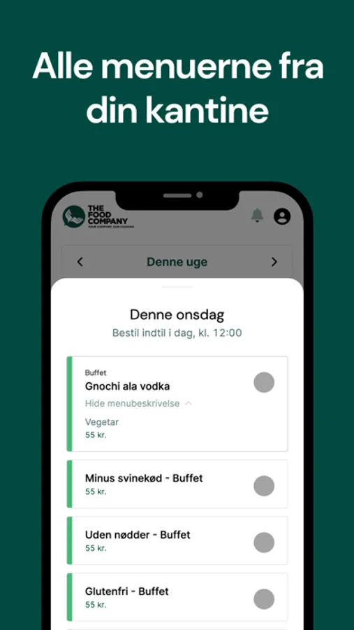 Download appen og gå på opdagelse i din virksomheds frokostordning! Vi har gjort det nemt for dig at vælge hvad du, som medarbejder skal have og spise til frokost, så køkkenet kan fokusere på at forberede din frokost.