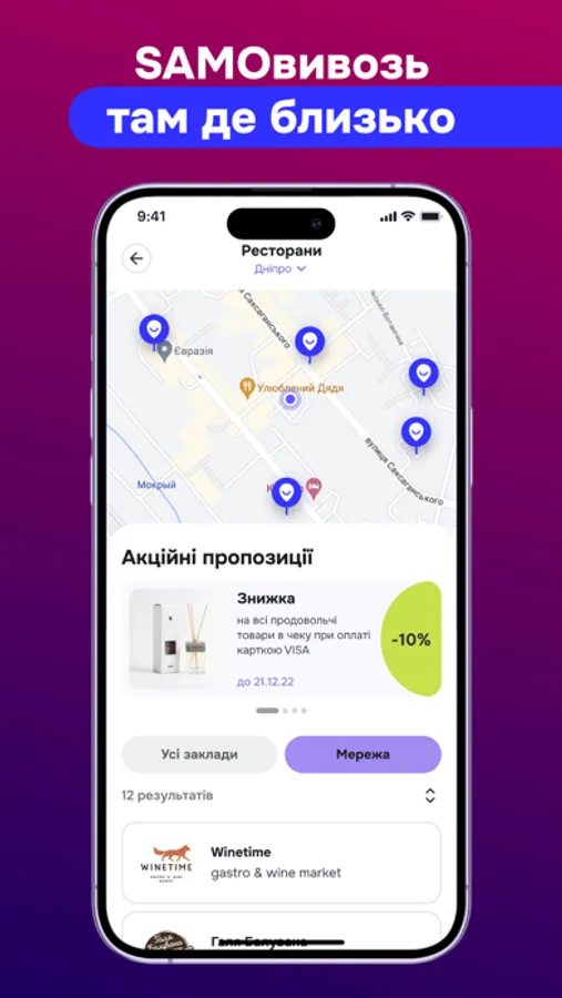 1. Wide stores selection. The app gives you a possibility to select stores for pickup. Just look up them into your region and choose the best for you, with marking them on a map.