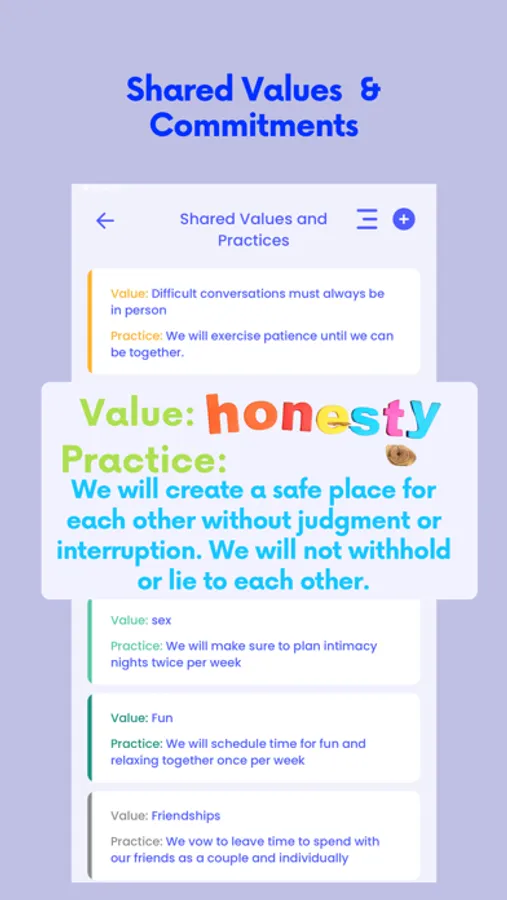 - Connect all of your lists and goals with your partner