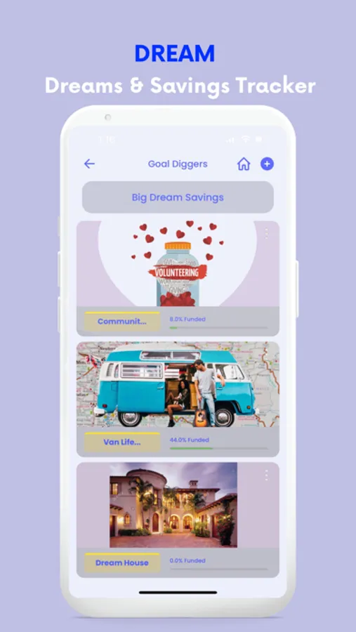 - Create Big Dream Savings goals