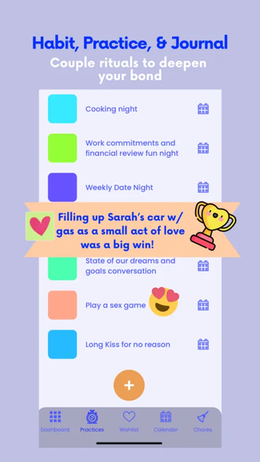 LoveVue is a habit tracking tool used by couples and relationship coaches to prioritize meaningful, long-lasting, romantic relationships. Use LoveVue’s premium features to build a healthy foundation for your relationship and spark conversations as you create your couple culture: