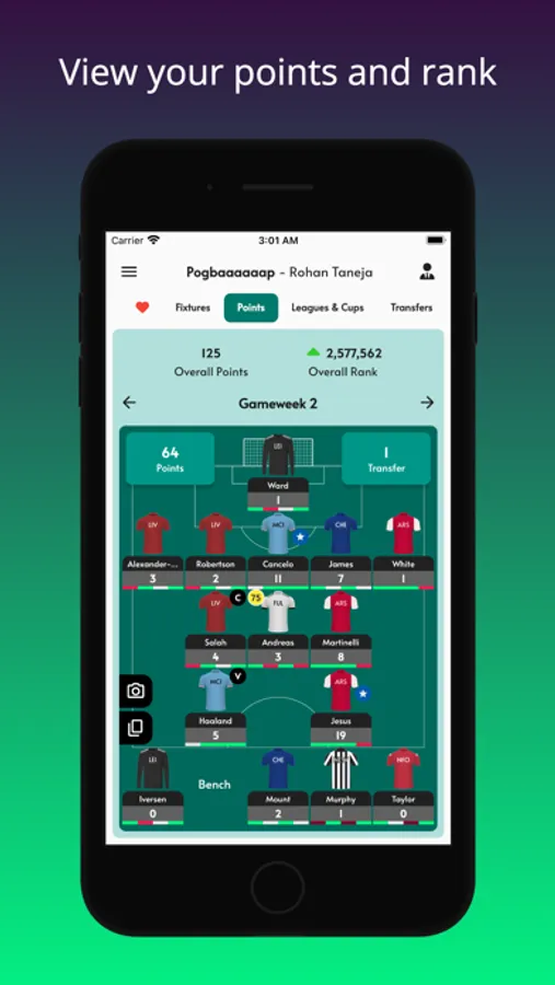 This FPL app allows you to easily see your points, rank and mini leagues among many other features: