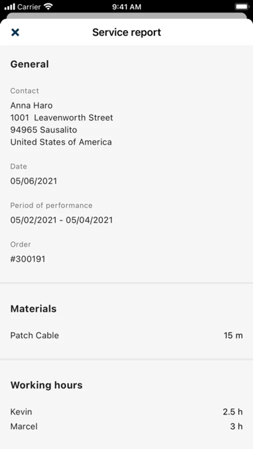 • Share the service report via mail or a service of your choice