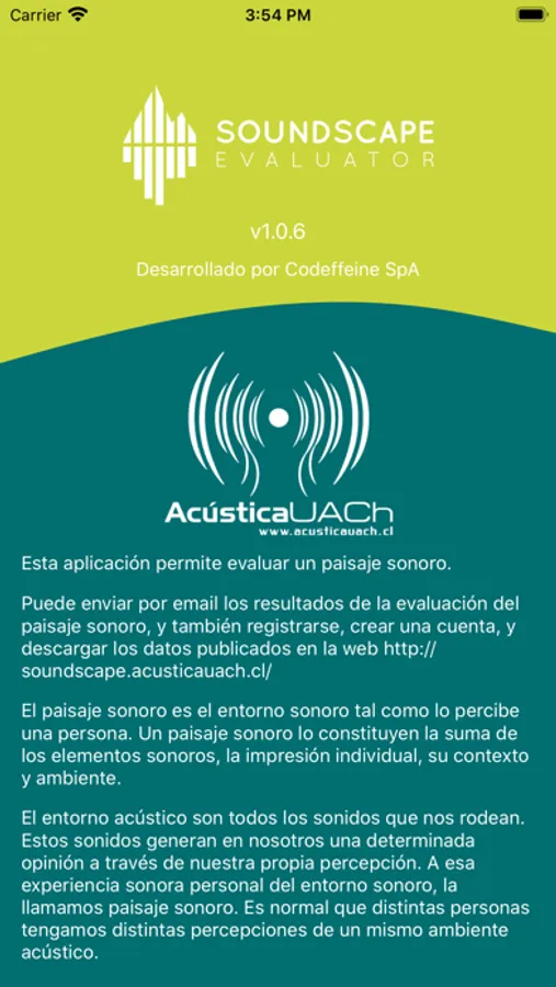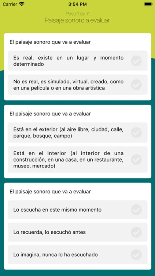 Esta aplicación permite evaluar un paisaje sonoro con preguntas estandarizadas (basadas en la