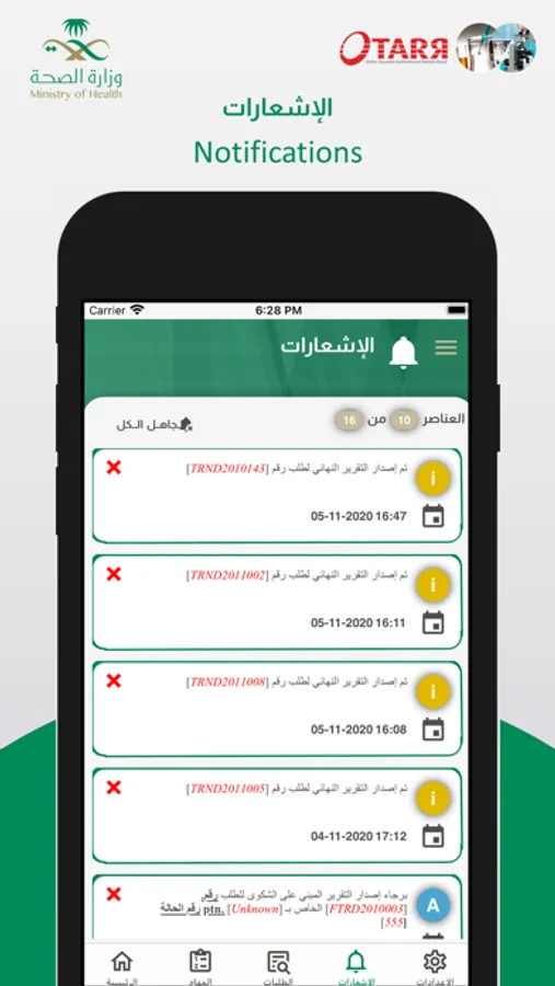 • Support info: Contacting the MOH technical support team to report any issue in using app or portal, or just for suggestions through sending e-mail or direct calling to one of the technicians in MOH technical support team.