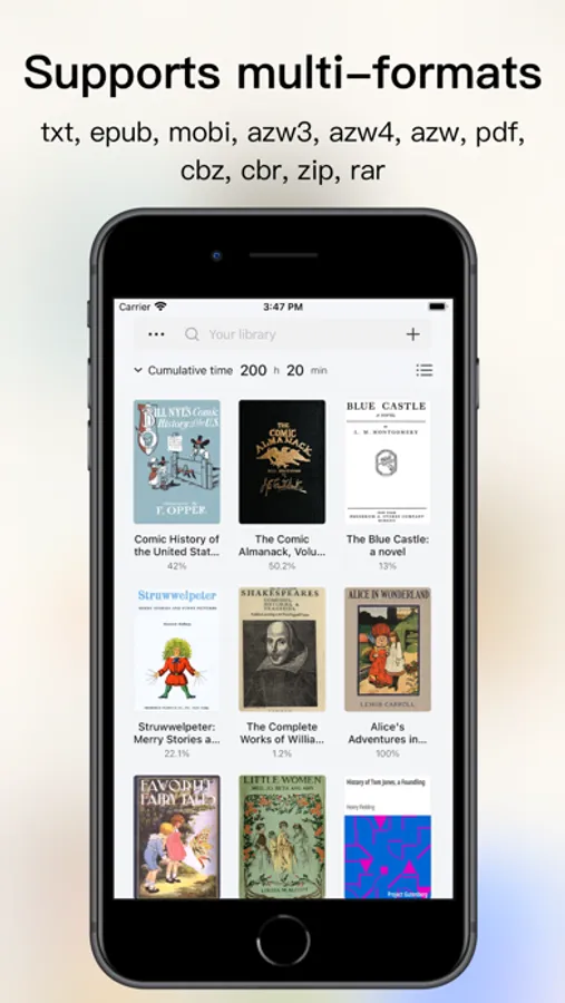 1. Rich format support, including txt, epub, mobi, azw3, azw4, azw, cbz, cbr, pdf, zip, and rar (only for files without DRM protection).