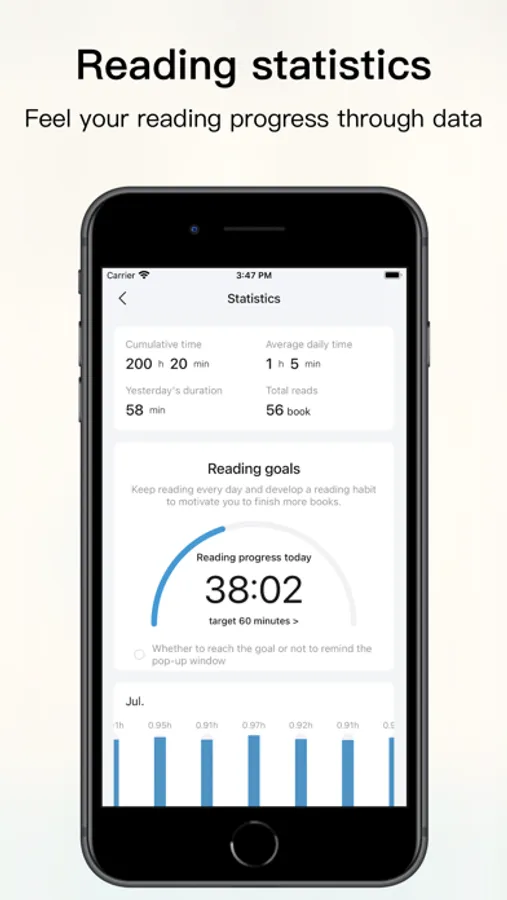6. Statistics your reading records, feel your reading progress through data, set your reading goals, reading time, and more.
