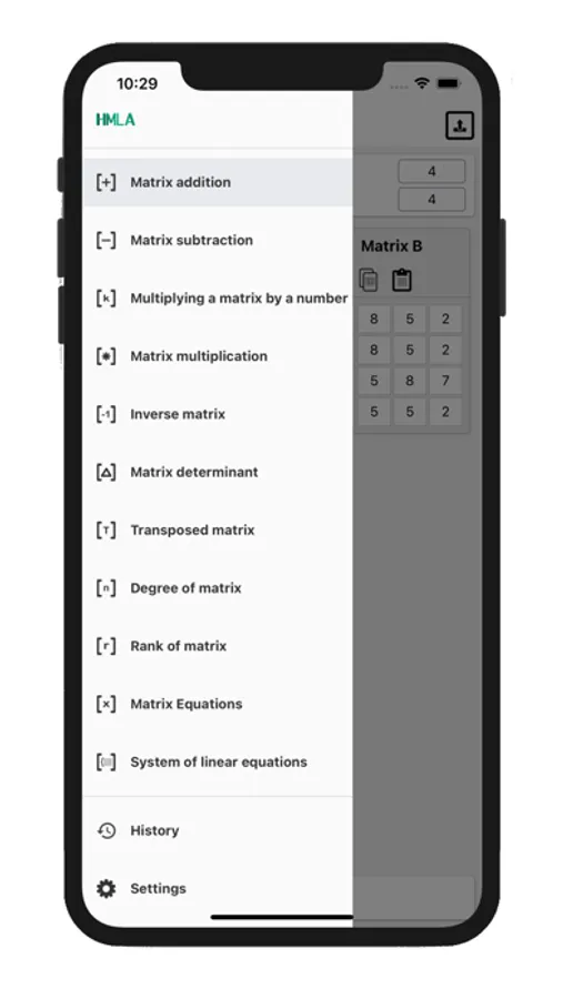 The following operations are available in this matrix calculator: