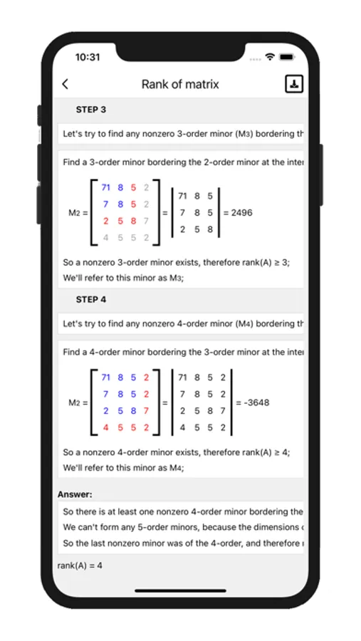 - Finding the rank of a matrix using: