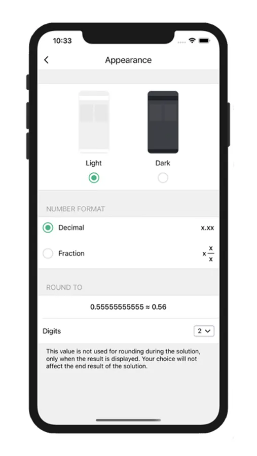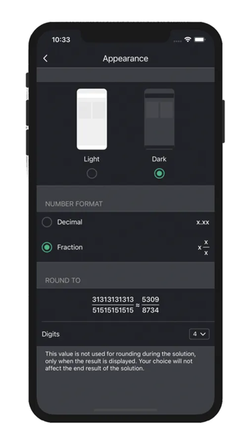 - Presents solutions as ordinary and decimal fractions;