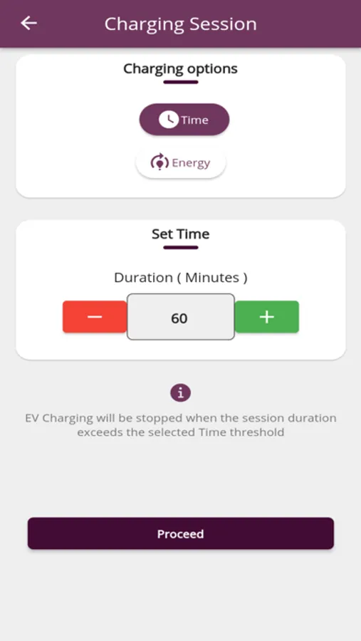 • Simple scan action, select type of charging (Time/Energy) and proceed.